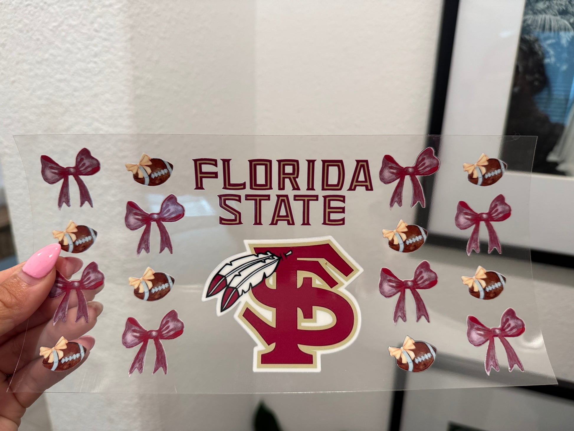 FSU Seminoles Bow Football 1 Bow UV DTF Wrap Transfer 16oz | No Heat Needed | Waterproof | Permanent Adhesive