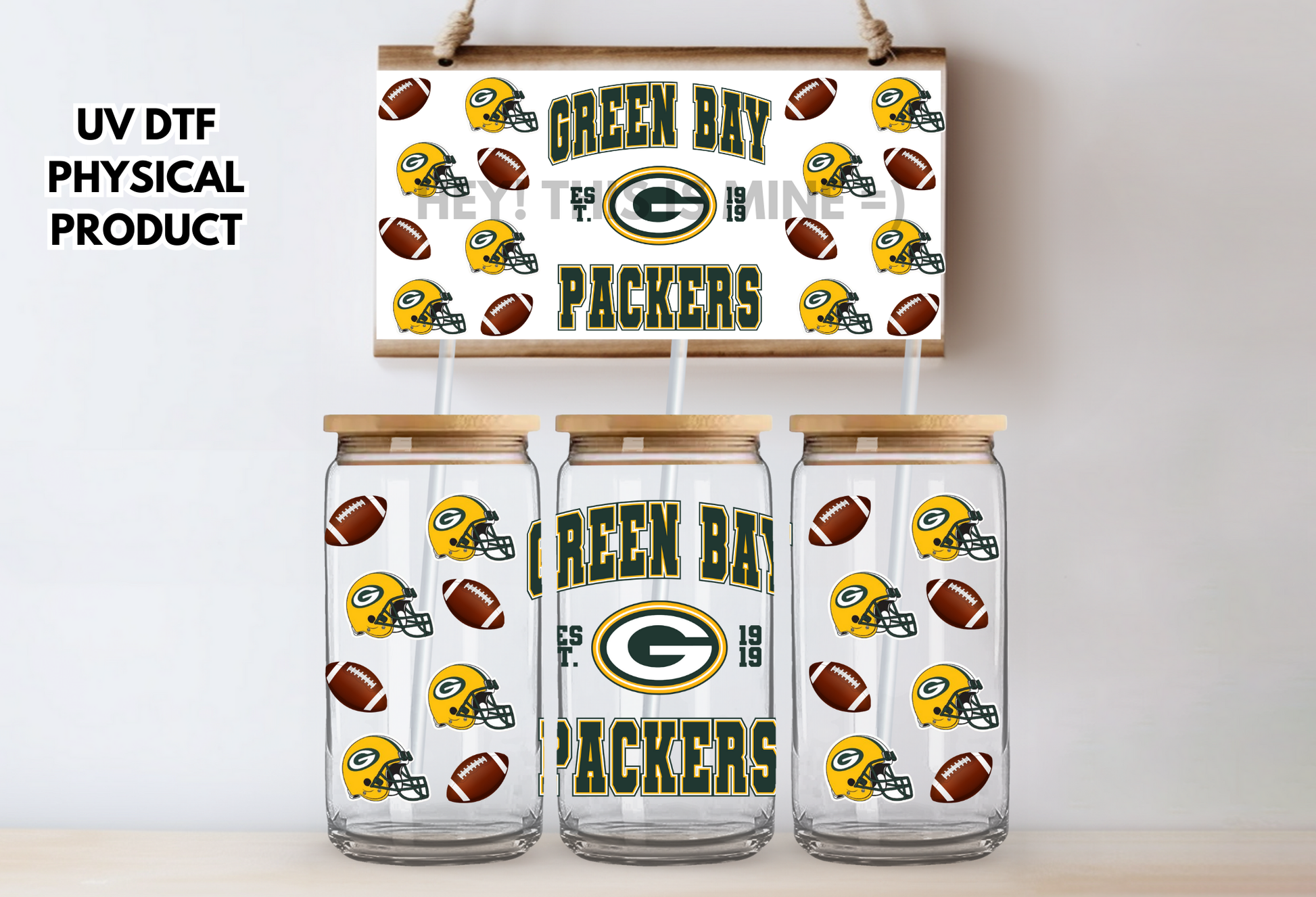 Greenbay Packers Helmets UV DTF Wrap Transfer 16oz | No Heat Needed | Waterproof | Permanent Adhesive