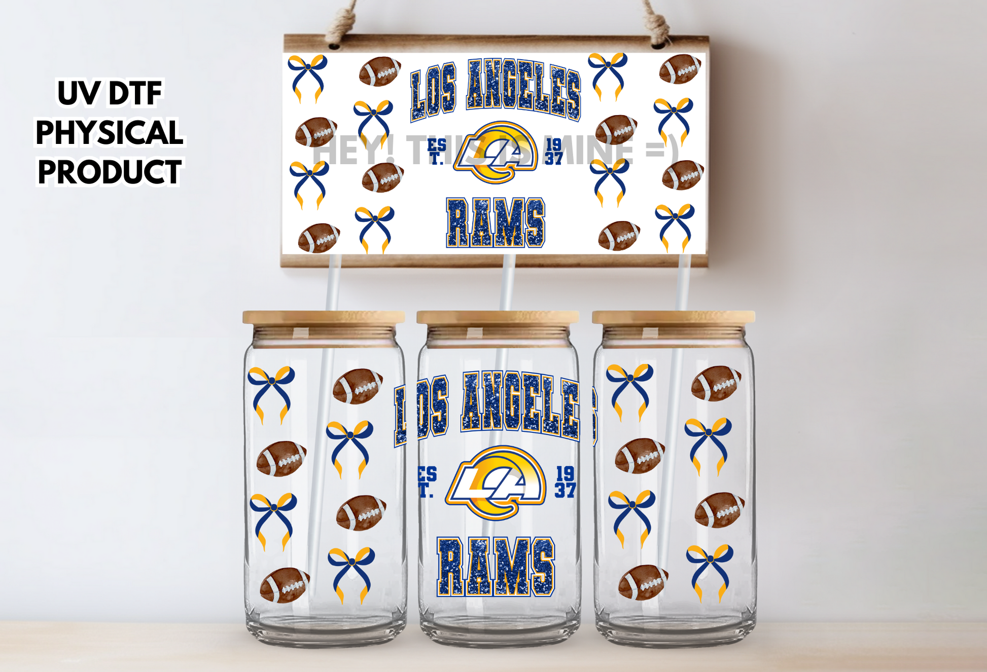 Los Angeles Rams Bows UV DTF Wrap Transfer 16oz | No Heat Needed | Waterproof | Permanent Adhesive