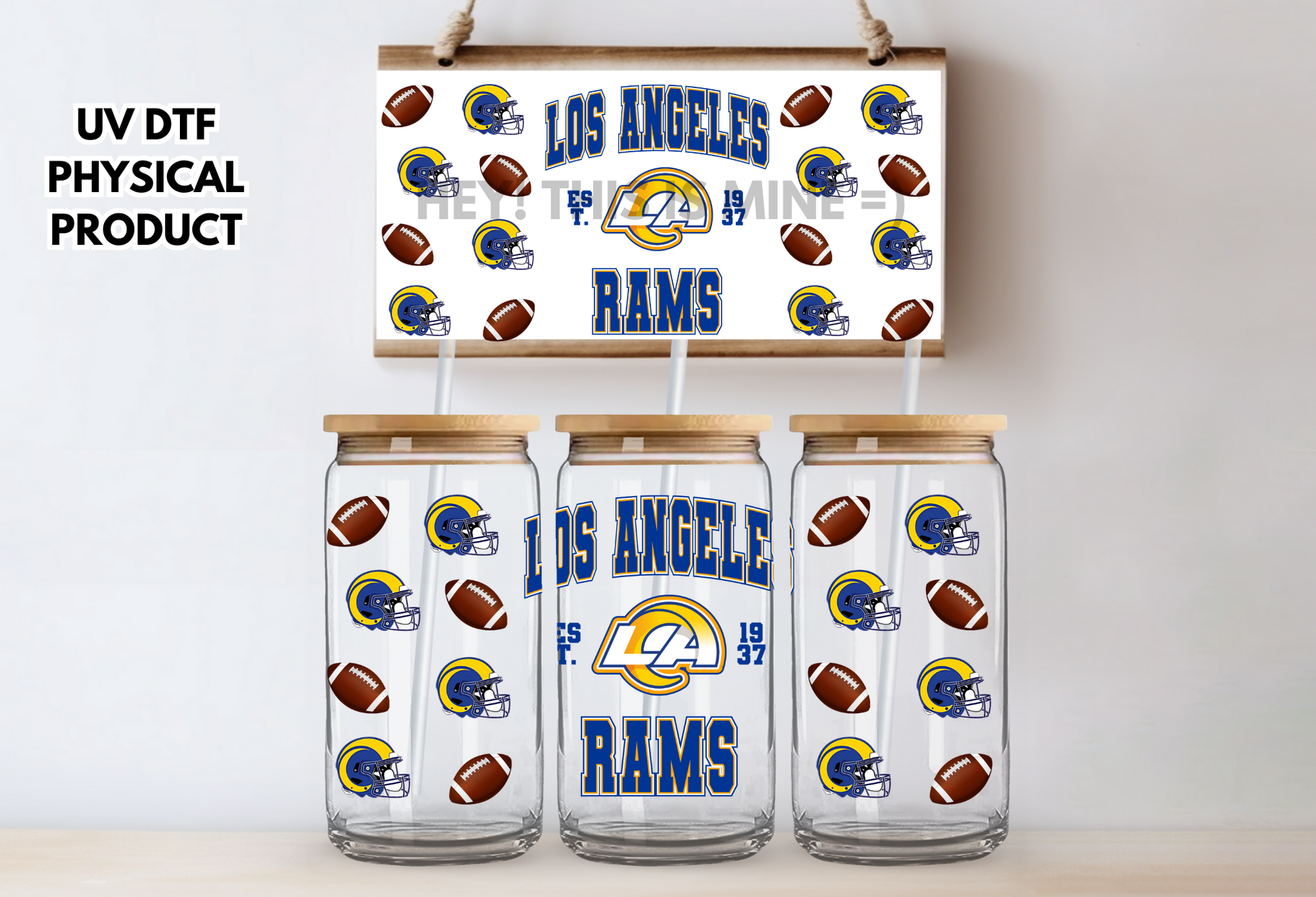 Los Angeles Rams Helmets UV DTF Wrap Transfer 16oz | No Heat Needed | Waterproof | Permanent Adhesive