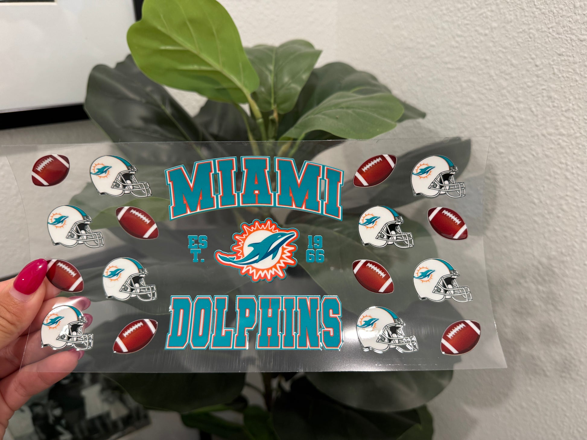 Miami Dolphins Helmets UV DTF Wrap Transfer 16oz | No Heat Needed | Waterproof | Permanent Adhesive